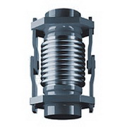 單式鉸鏈型波紋膨脹節(jié)通過其角度的變化來吸收管線、輸送通道或容器等沿其軸向方向因熱膨脹或收縮所引起的角向位移。通常兩件或三件組合使用,補(bǔ)償量與兩件產(chǎn)品間距離成正比,該波紋管膨脹節(jié)的體積小,重量輕,產(chǎn)品壓力推力由鉸鏈構(gòu)件承受, 角向鉸鏈波紋補(bǔ)償器可以補(bǔ)償管線在任意方向的角位移。